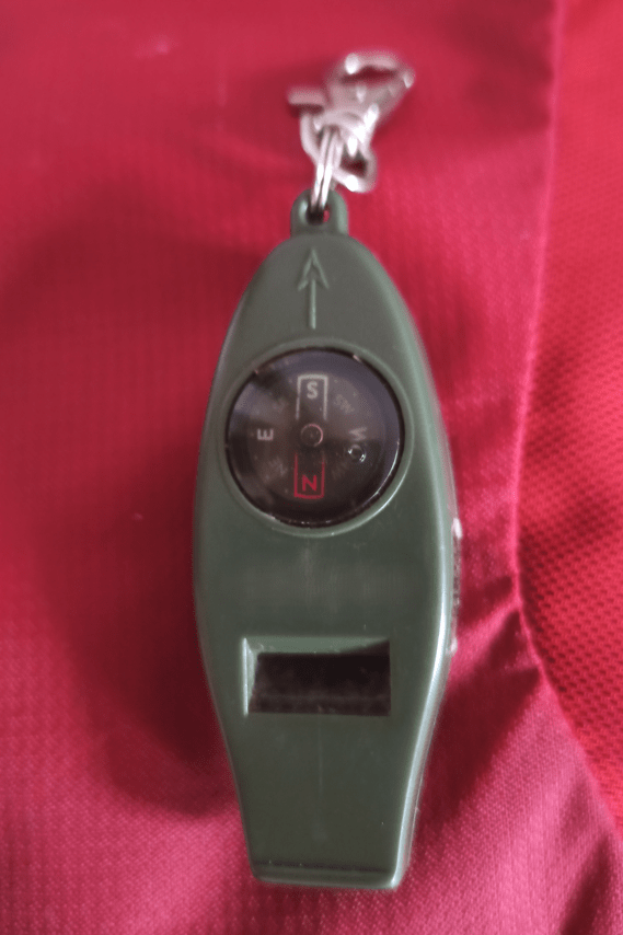 - une boussole – sifflet pour ne jamais se perdre et pouvoir avertir de sa présence en cas de besoin